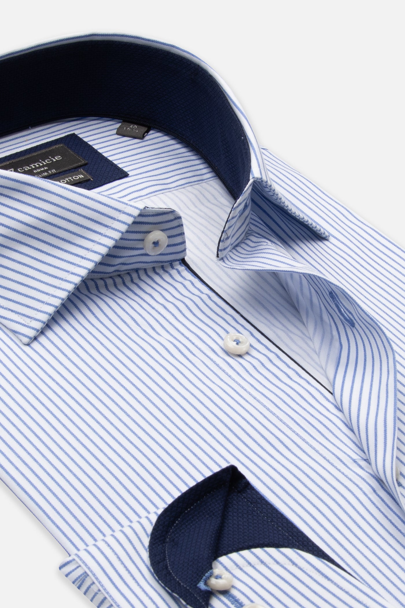 Discover the perfect blend of style and comfort with our Men's Slim Fit Sport Shirt. Crafted from high-quality poplin fabric, this shirt features a French collar and a trendy medium stripe pattern. Ideal for both casual outings and formal occasions, this shirt ensures you look sophisticated without sacrificing comfort.