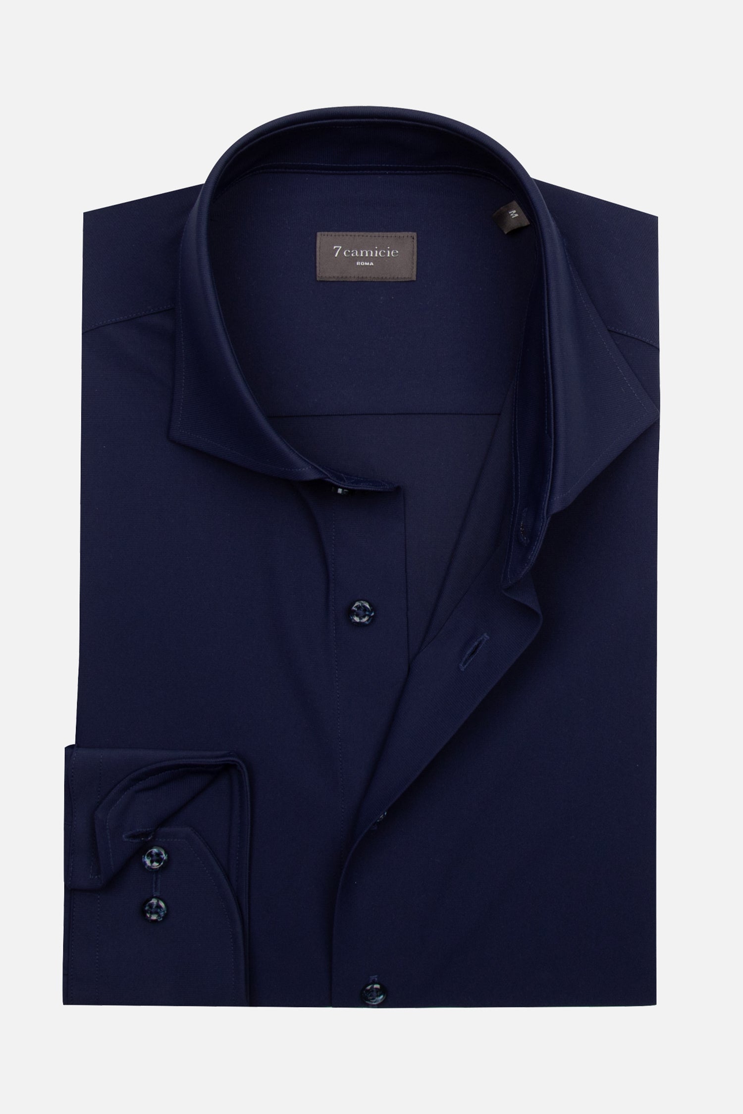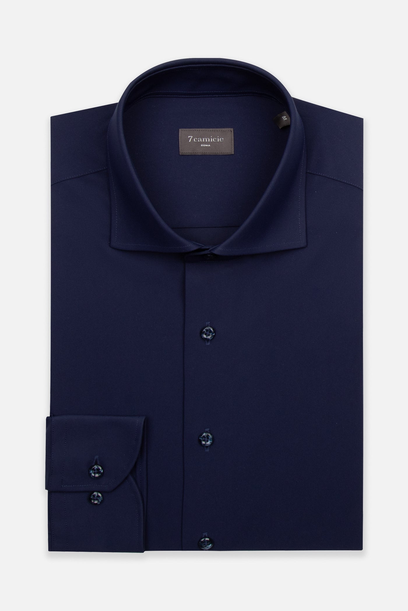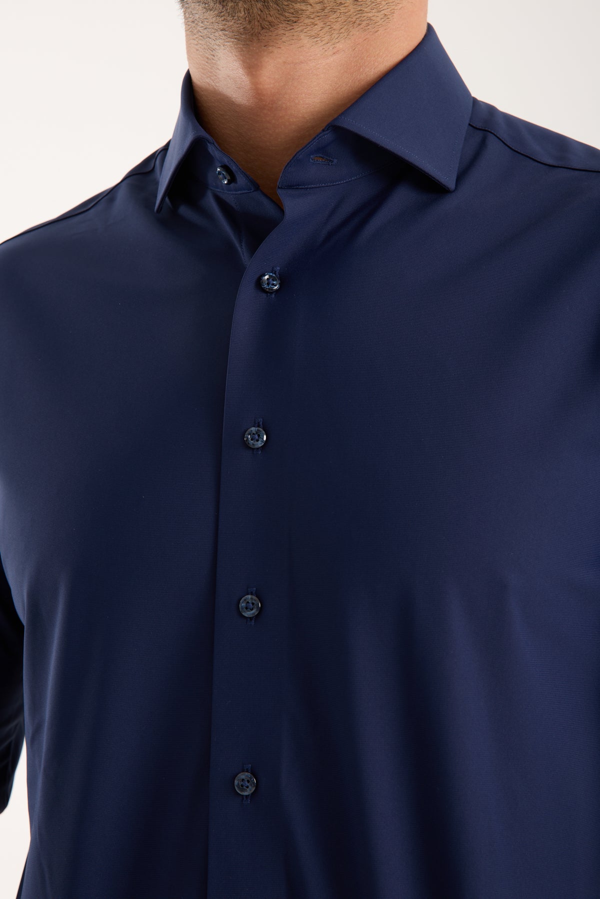 Product Description: Discover the perfect blend of style and comfort with our men's slim fit shirt. Crafted from premium Tencel, this shirt features a sophisticated French collar and long sleeves, making it an essential addition to any modern man's wardrobe. The plain pattern in a rich navy color ensures versatility, allowing you to dress it up for formal occasions or keep it casual for everyday wear. The slim fit design accentuates your physique while providing all-day comfort.