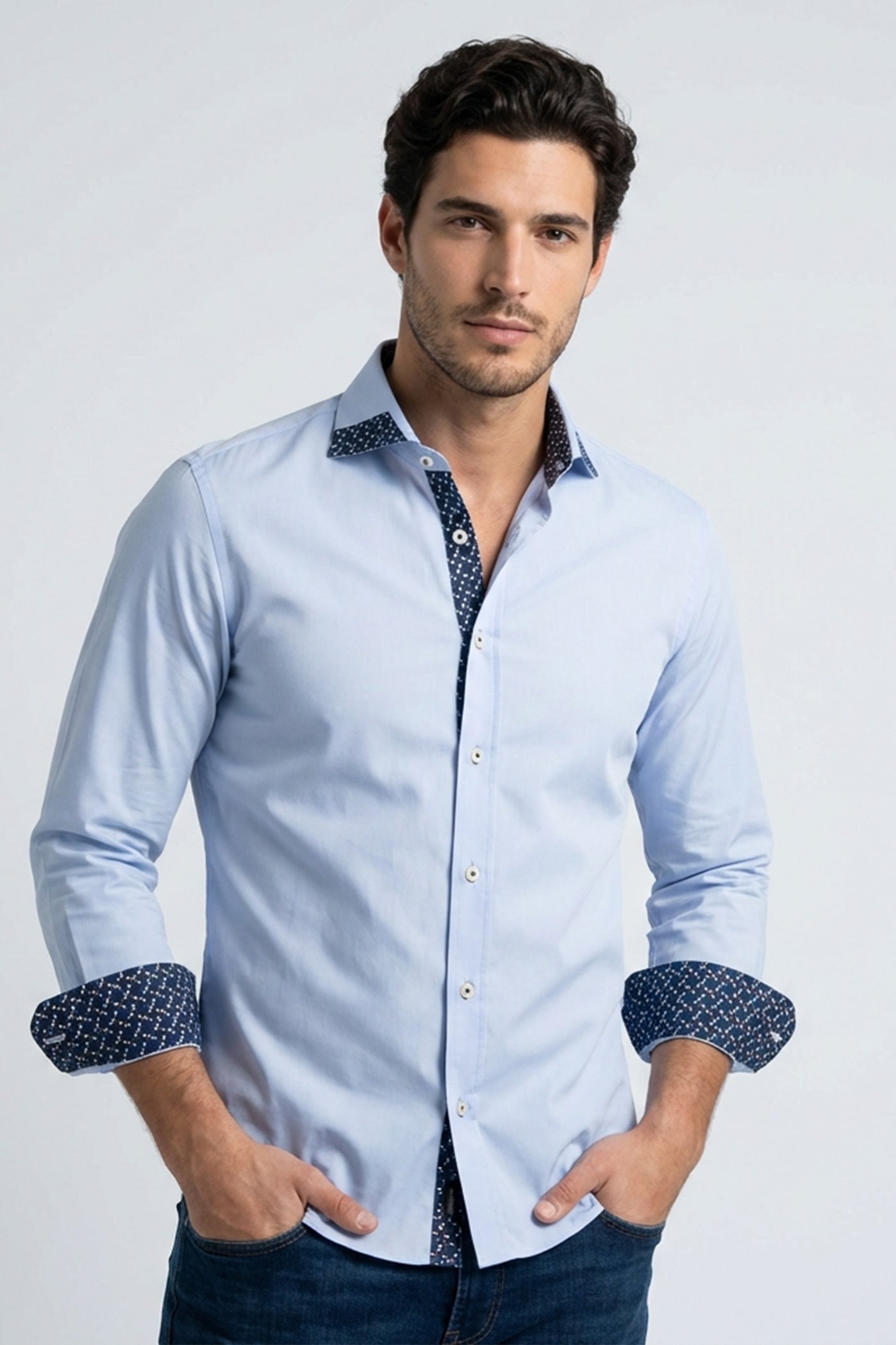 Poplin Stretch Man Shirt Light Blue