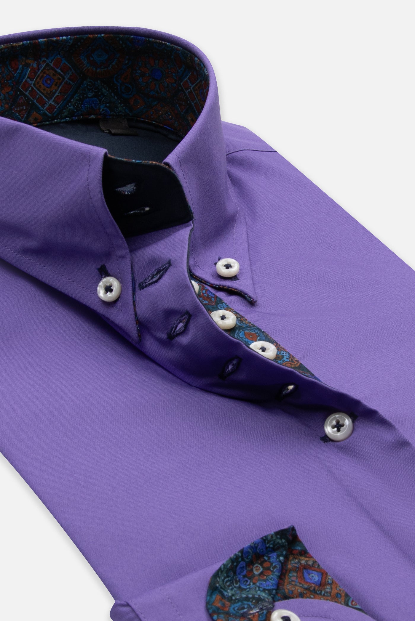 Entdecken Sie unsere exquisite Damenbluse in eleganten Violett, die jedem Outfit eine besondere Note verleiht. Diese Button-down-Bluse kombiniert modernen Stil mit zeitloser Eleganz. Hergestellt aus hochwertigem Poplin Stretch-Stoff, bietet sie nicht nur eine ausgezeichnete Passform, sondern auch höchsten Tragekomfort.