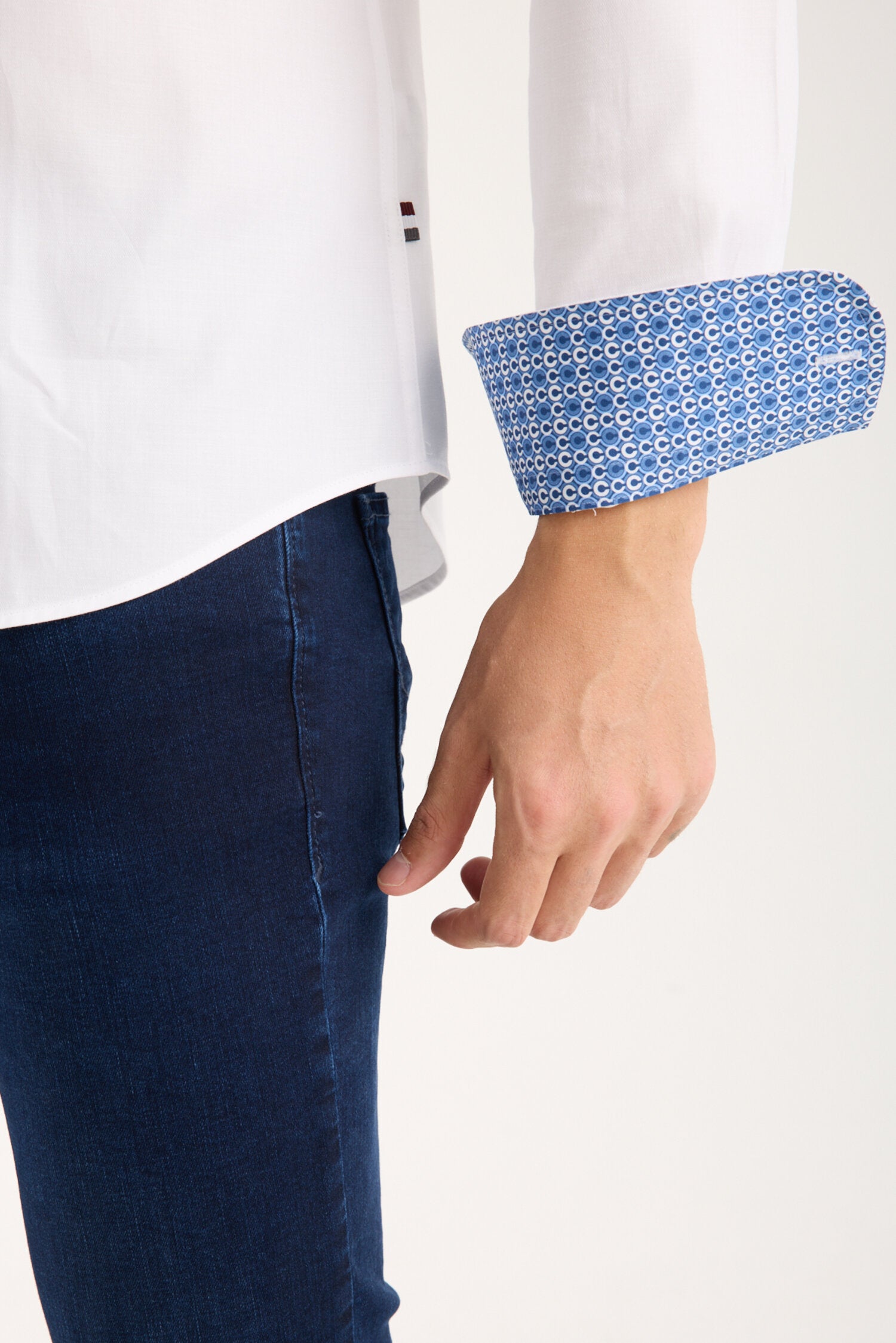 Dieses stilvolle Herrenhemd vereint Komfort und Eleganz. Es verfügt über einen Button-Down-Kragen und ist in Schmaler Passform geschnitten. Die langen ärmel sorgen für einen klassischen Look, wehrend das einzigartige Mustermix innerhalb des Hemdes für einen modernen Touch sorgt. Aus robustem Armoured-Gewebe gefertigt, ist dieses Hemd sowohl strapazierfehig als auch angenehm zu tragen. Erheltlich in einem zeitlosen Wei+ƒ, eignet es sich hervorragend für sportliche Anlesse.