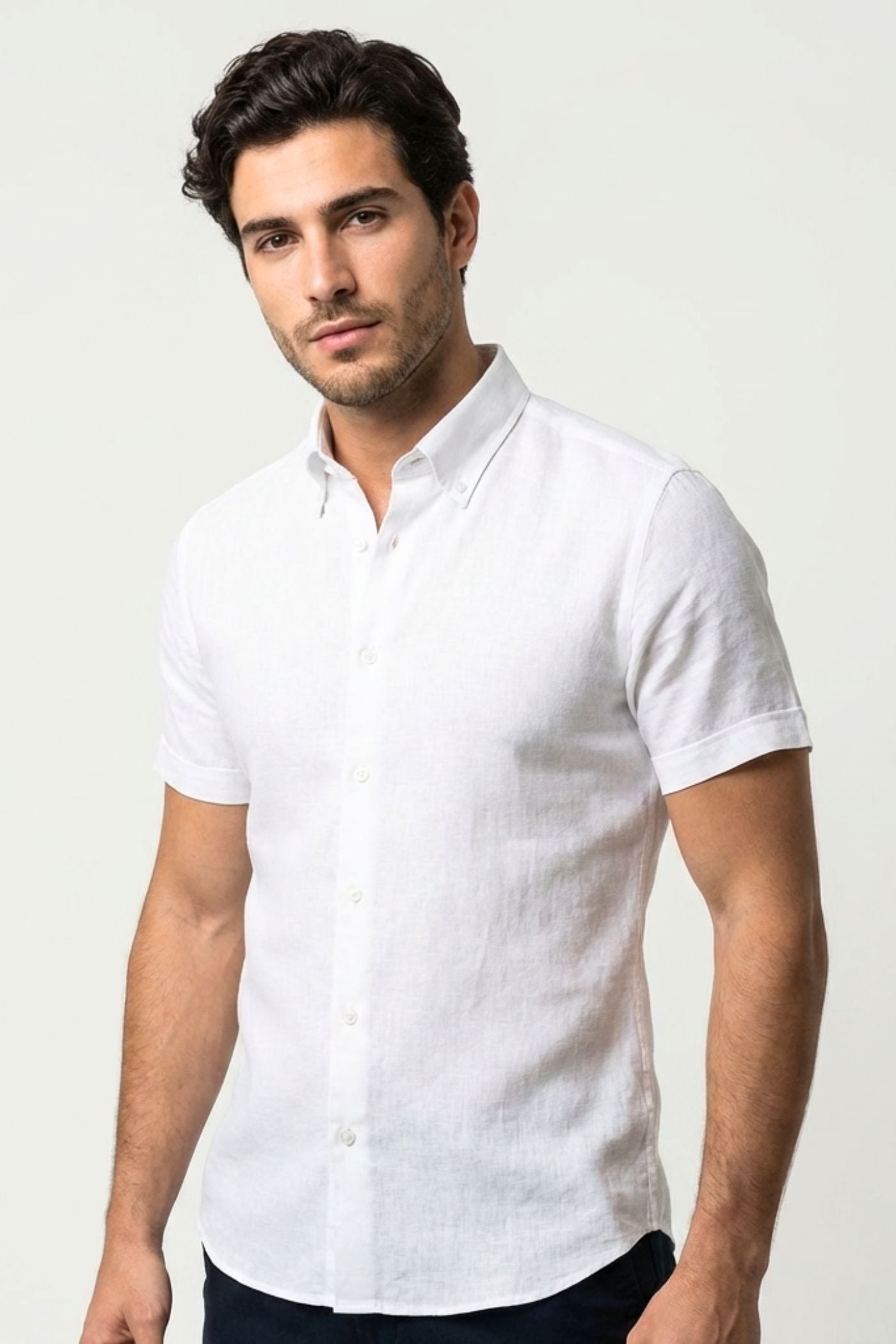 Hecha al 100% de lino para una sensación de comodidad y transpirabilidad. Con mangas cortas y un ajuste Slim Fit excepcional, asegura un look casual. Gracias a nuestra amplia experiencia a lo largo de muchos años y nuestro conocimiento en la fabricación de camisas, nuestro ajuste especial está diseñado para adaptarse a todo tipo de cuerpo. El cuello tipo Button Down especialmente diseñado te ayudará a conseguir un aspecto más atractivo.
