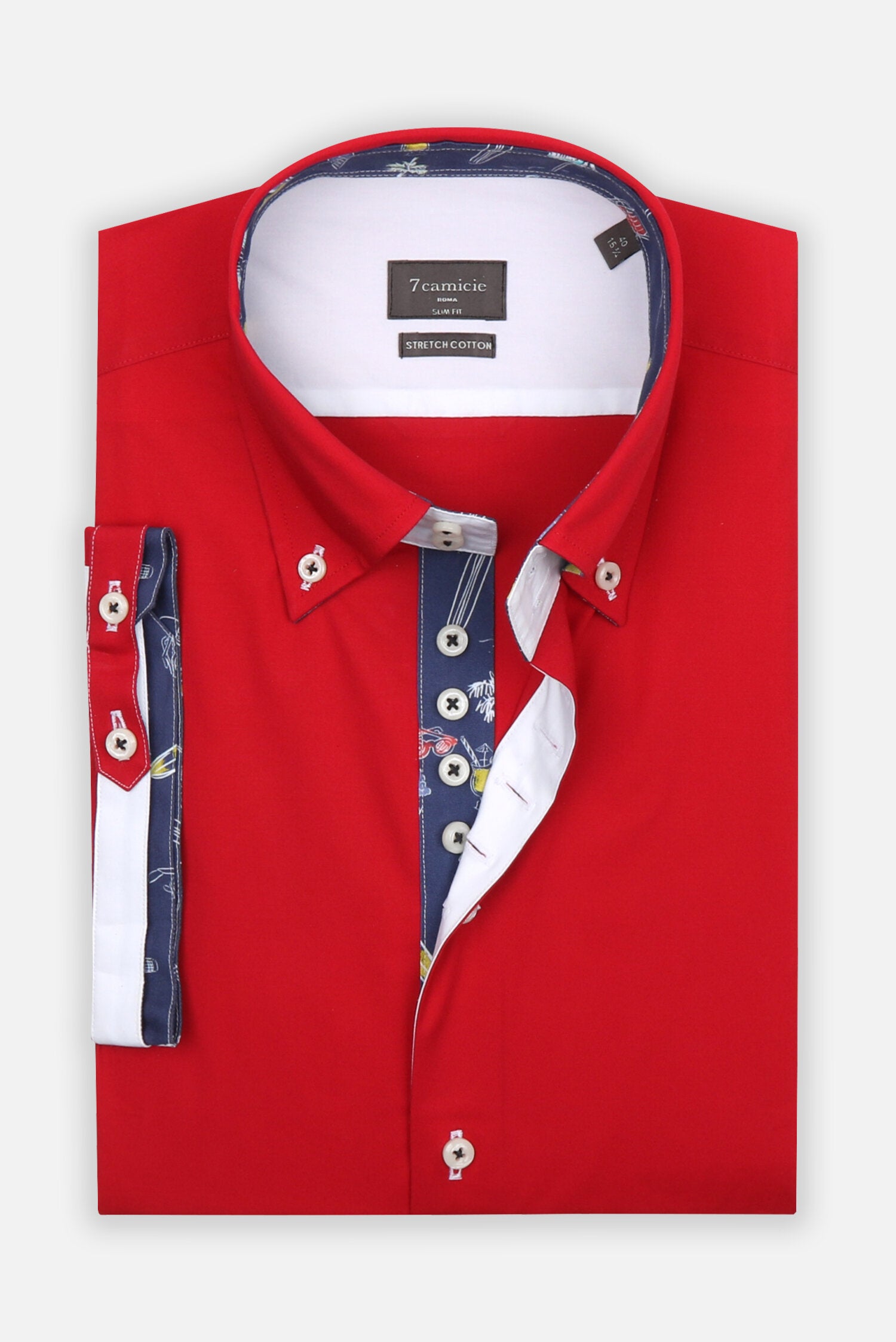 Descubre la perfecta combinación de elegancia y comodidad con nuestra camisa de hombre slim fit. Con un cuello botón down que aporta un toque de sofisticación, esta camisa es ideal para cualquier ocasión. Fabricada en popelín elástico, te garantizará libertad de movimiento mientras mantienes un aspecto impecable. Disponible en un vibrante color rojo, se distingue por sus detalles contrastantes en el interior, agregando un elemento ónico a tu atuendo.