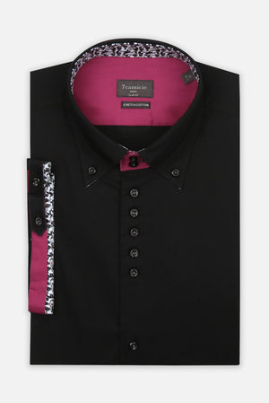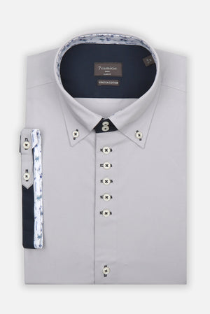 Los modelos de camisa de hombre que han marcado la historia de la moda masculina y de 7camicie: en esta colección puedes encontrar las camisas que nos han situado entre los mejores del mundo. Camisas con doble y triple cuello, con un interior de cuello de 7 botones y puños contrastantes, perfectas para aquellos que buscan más que una simple camisa. Las icónicas camisas de hombre de 7camicie son una verdadera declaración de estilo y personalidad. Puedes llevarlas con unos vaqueros para un aspecto más informal o con unos pantalones para un aspecto original y elegante. Tejidos como el satén y el popelín elástico garantizan un ajuste perfecto. Descubre tu talla y añade un toque de originalidad a tu estilo con la colección Iconic.