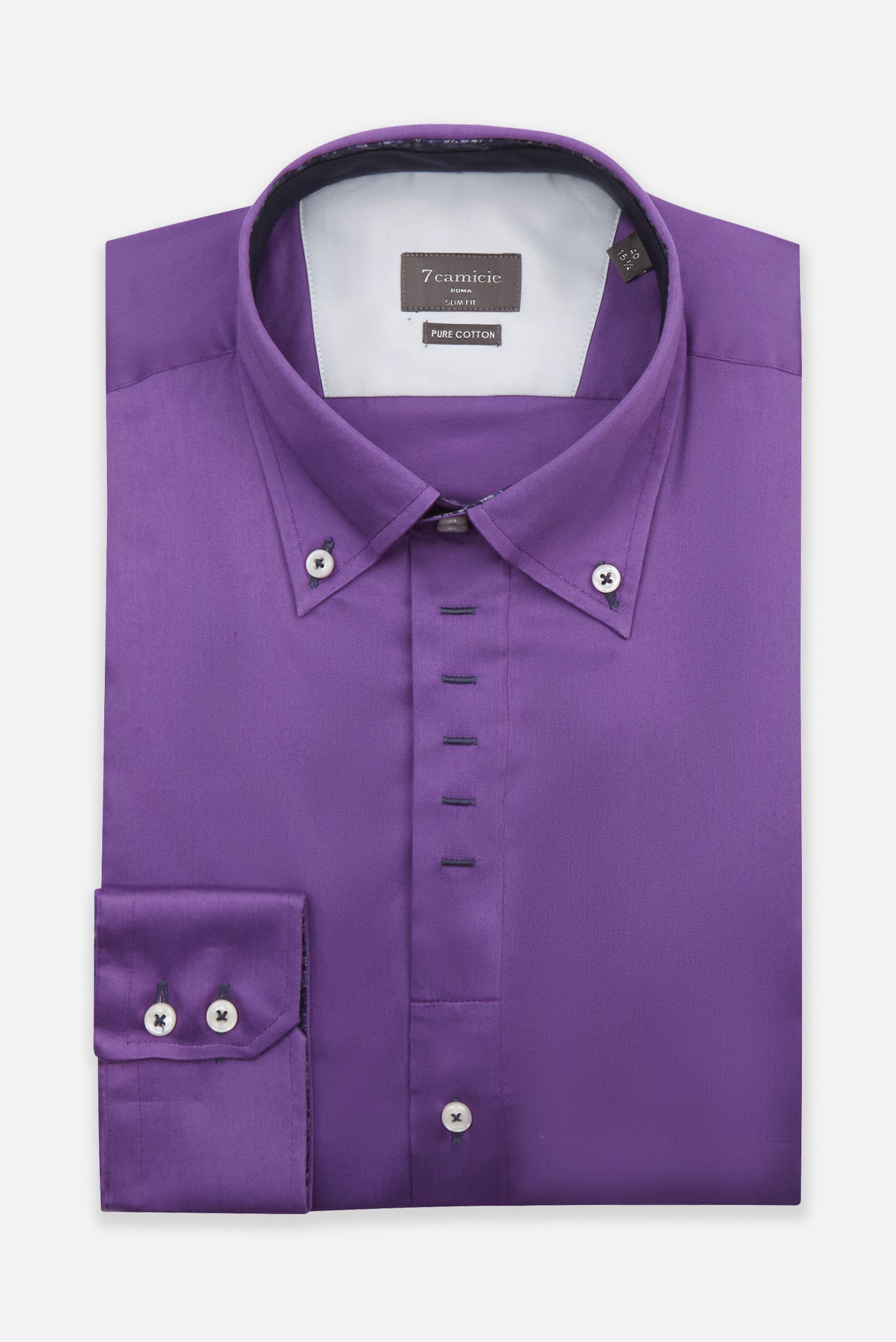 Fabricada en satén suave y brillante, esta camisa se presenta en un atractivo color pórpura. Su cuello button-down aporta un toque clásico, mientras que la fit slim asegura una silueta estilizada. Las mangas largas proporcionan un look sofisticado, y el patrón liso permite combinarla fácilmente con cualquier atuendo. Con detalles contrastantes que aóaden un toque de originalidad, esta camisa es ideal tanto para el día a día como para eventos especiales.