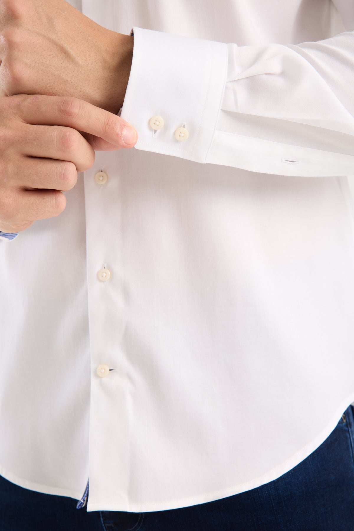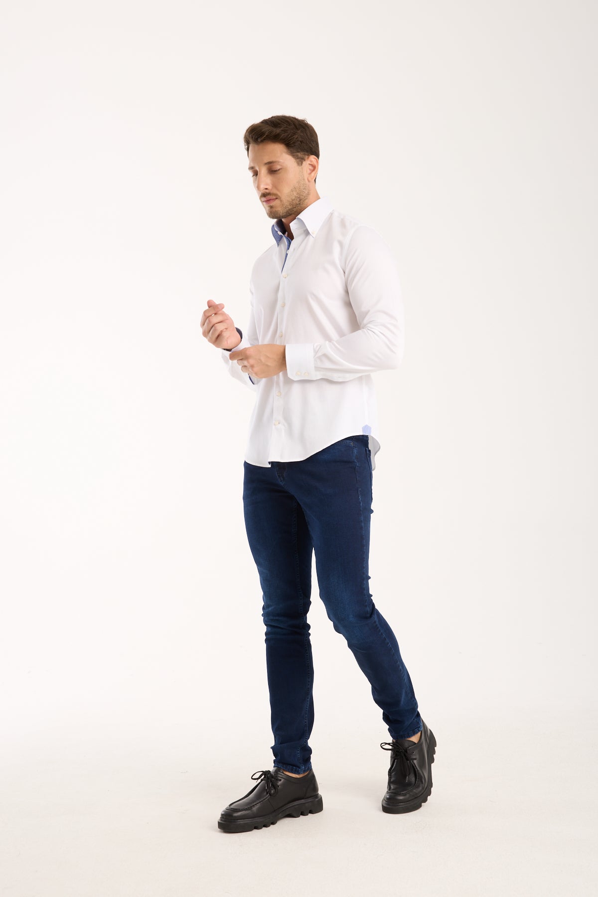 Cette chemise à col boutonné est fabriquée en satin de haute qualité, offrant une sensation douce sur la peau. Son fitting ajusté (slim fit) met en valeur la silhouette tout en garantissant une grande liberté de mouvement. La manche longue permet une élégance classique, tandis que le motif uni donne une allure raffinée. Disponible en blanc, cette chemise s'associe facilement avec divers v+¬tements, qui va des jeans décontractés aux pantalons habillés.