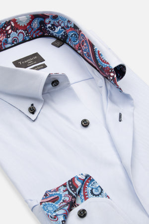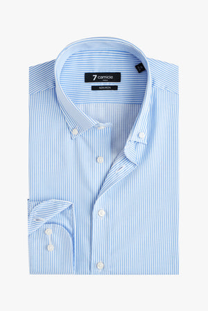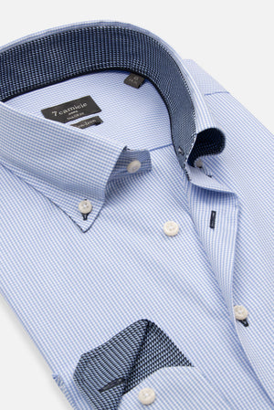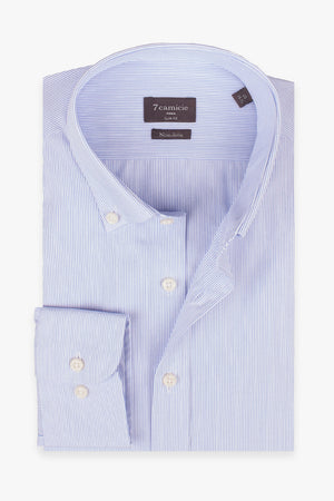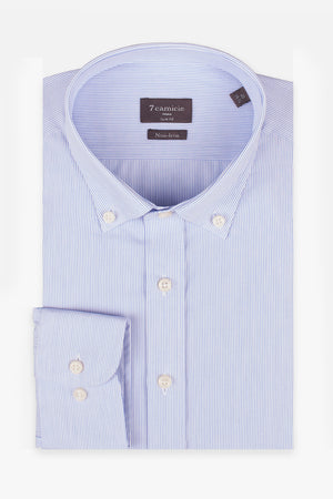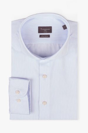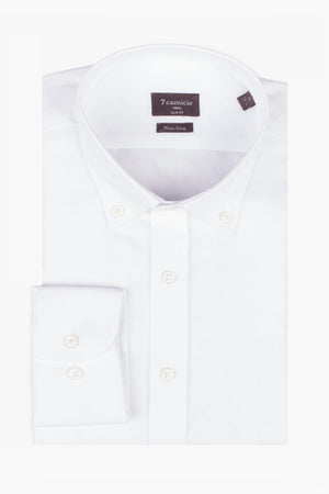 Vivez le style sans effort et gagnez du temps avec nos chemises No-Iron. Les chemises No-Iron de 7camicie sont fabriquées à 100 % en coton doux et respirant, assurant une sensation de confort sur la peau tout au long de la journée. La technologie No-Iron innovante prévient les plis et vous aide à gagner un temps précieux. Ces chemises sont aussi simples que possible : il suffit de les mettre dans la machine à laver, de les suspendre pour les faire sécher, et vous êtes prêt, pas besoin de repasser. Idéales pour les voyageurs fréquents et pour ceux qui mènent une vie trépidante, nos chemises No-Iron vous permettent de rester élégant sans les tracas du repassage. Adoptez la commodité sans compromettre le style avec la collection No-Iron de 7camicie.