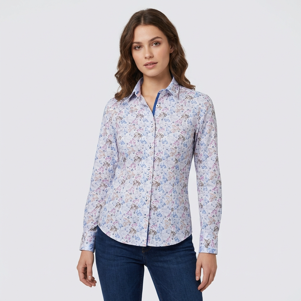 Nous vous présentons la chemise pour femme "Beatrice Sport Poplin" de 7camicie en blanc et bleu : un mélange d'élégance sportive et de charme féminin. Confectionnée avec un coupe slim fit avec coton de qualité supérieure, cette chemise arbore un motif floral délicat qui ajoute une touche de sophistication à n'importe quelle tenue. Qu'elle soit associée à un jean pour une journée décontractée ou portée avec un pantalon pour un look plus raffiné, cette chemise dégage polyvalence et style intemporel.