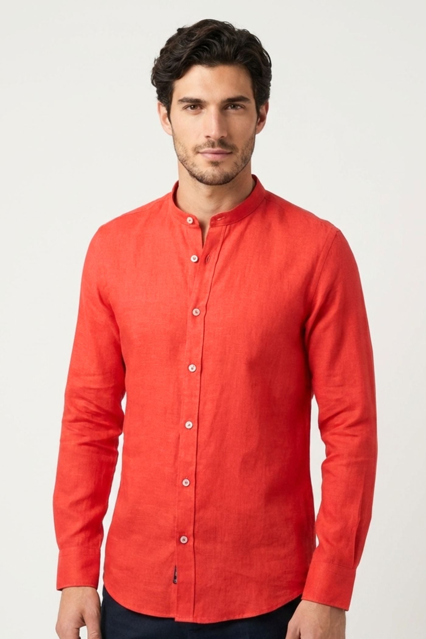 Ajoutez une touche de sophistication à votre garde-robe avec notre chemise en lin pour homme. Dotée d'un col coréen et d'une coupe slim fit, cette chemise est le choix parfait pour ceux qui recherchent style et confort. Disponible dans un couleur orange éclatant, elle se démarque par son design intemporel et sa texture agréable.