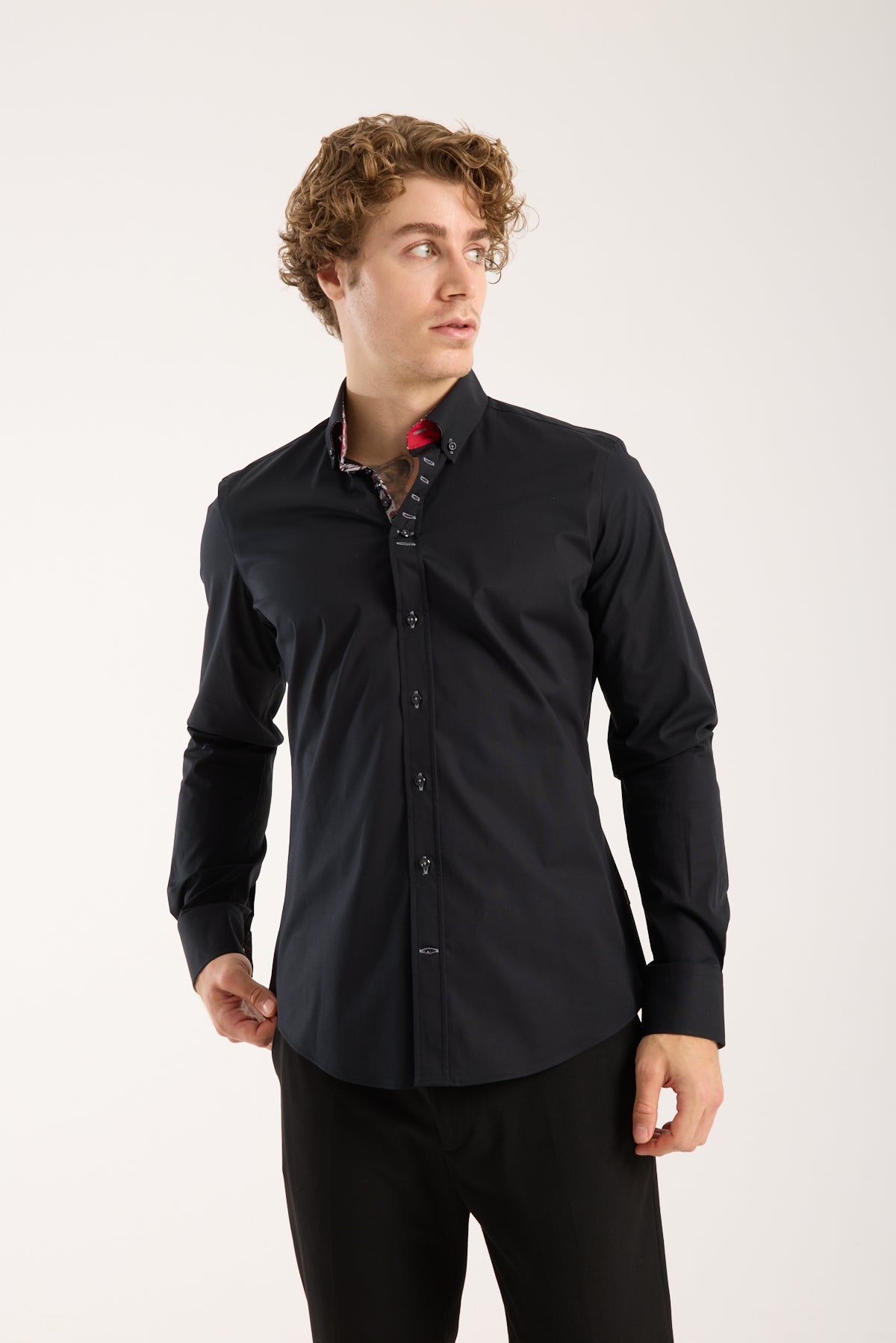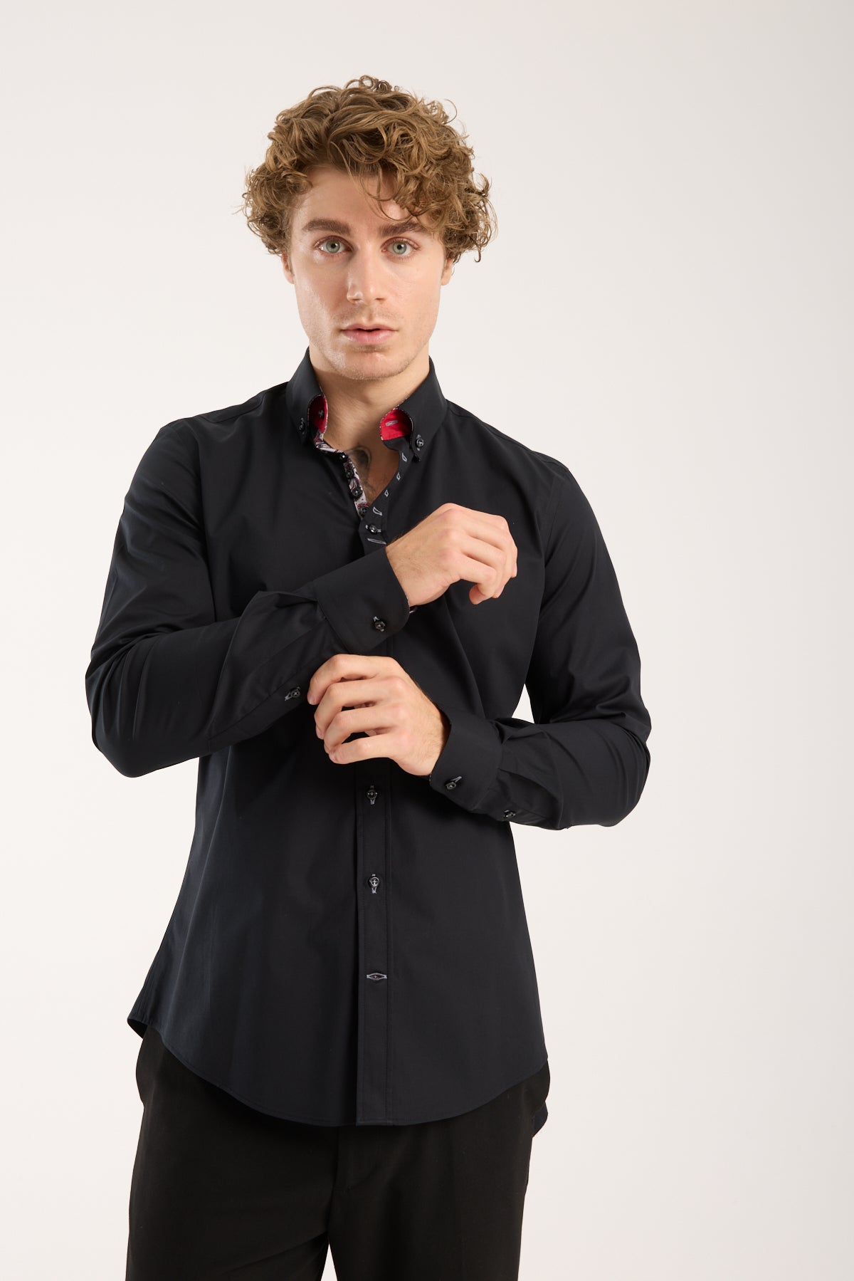 Camicia Uomo Donatello Iconic Popelin Stretch Nero