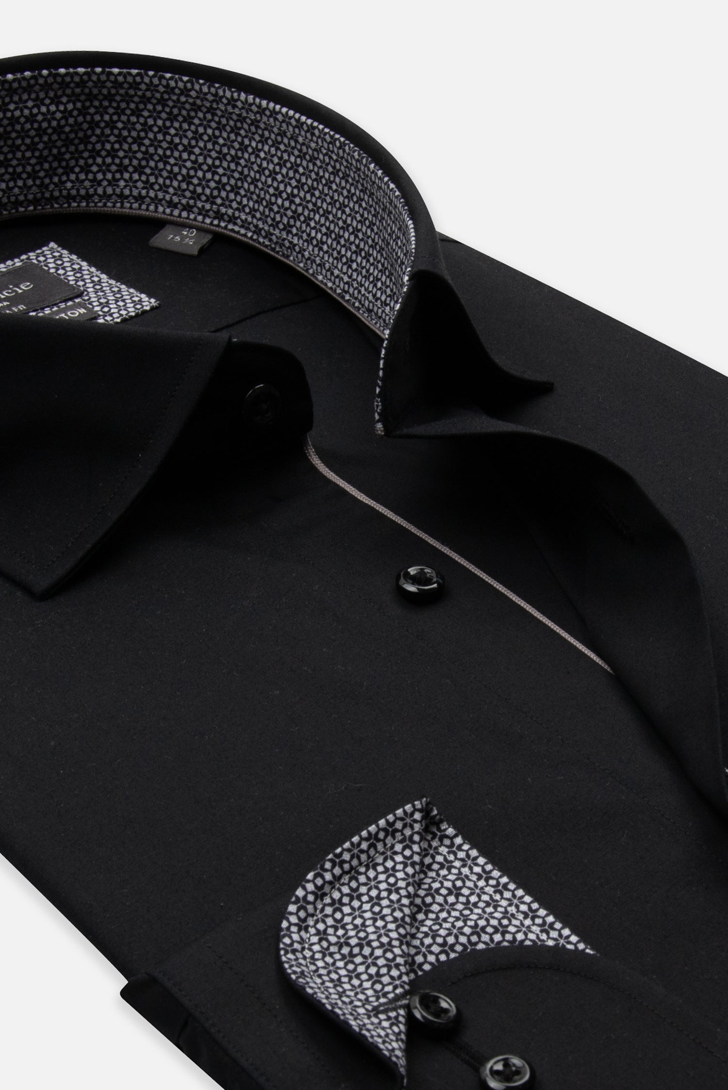 La camicia è dotata di una vestibilità slim fit, che si adatta perfettamente al corpo, accentuando la silhouette. Il suo design semplice e il colore nero la rendono versatile, permettendoti di abbinarla facilmente con diversi outfit. Grazie al tessuto in cotone elastico, la camicia offre comodità e libertà di movimento in ogni situazione.