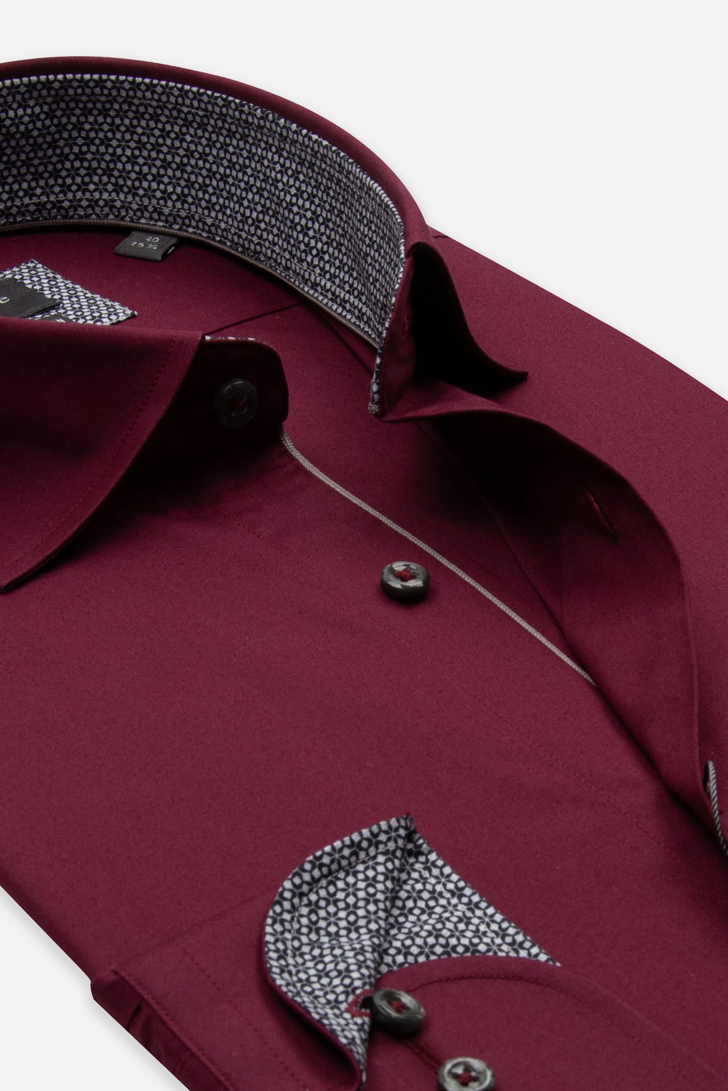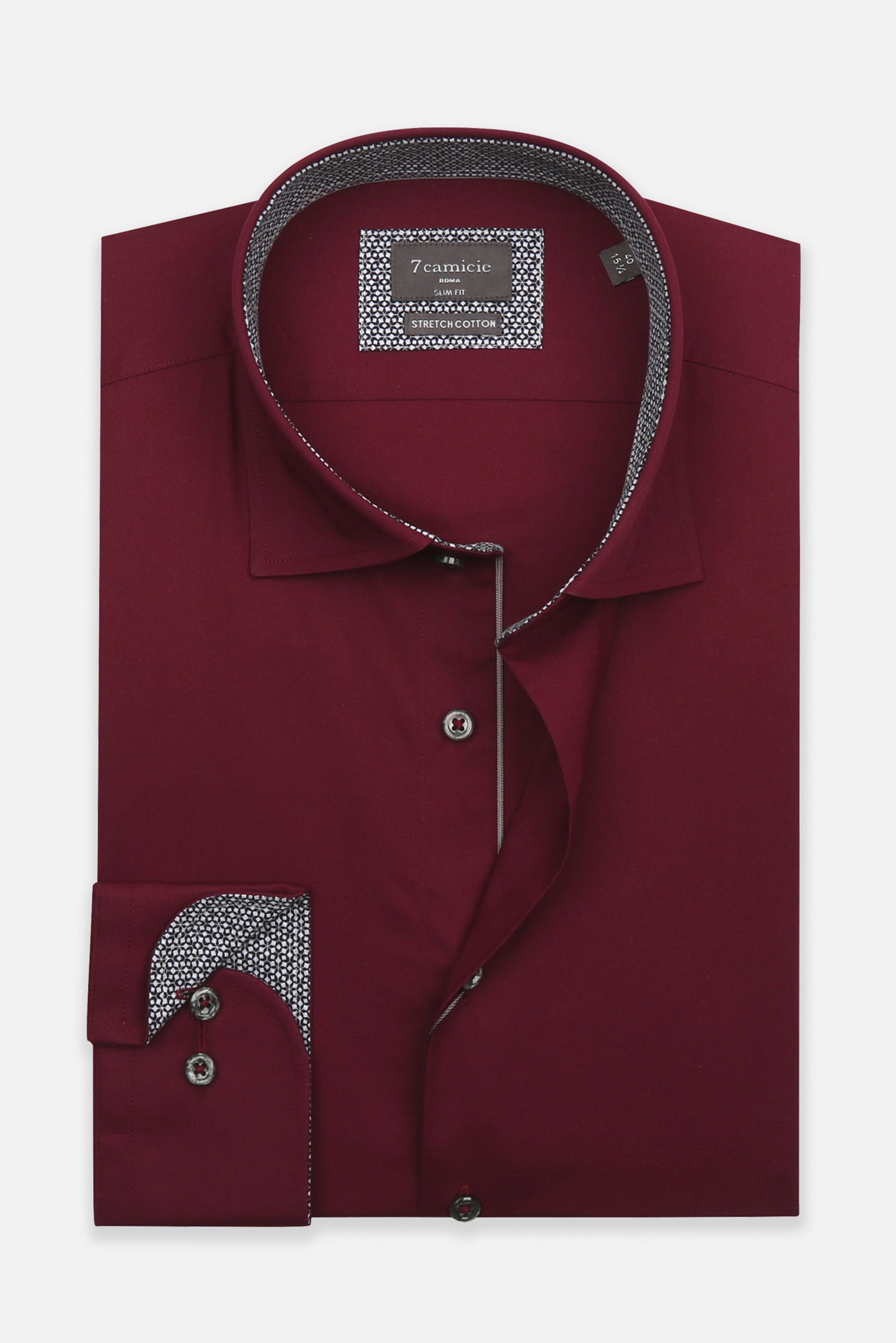 Questa camicia presenta un colletto francese, ideale per esaltare il tuo stile. La vestibilità slim offre un look moderno e raffinato, mentre la manica lunga assicura comfort durante tutto il giorno. Realizzata in poplin stretch, il tessuto è morbido e permette una libertà di movimento unica. Il design è plain, senza motivi, per un aspetto elegante e versatile. Disponibile in un elegante color bordeaux, questa camicia è perfetta per ogni occasione.