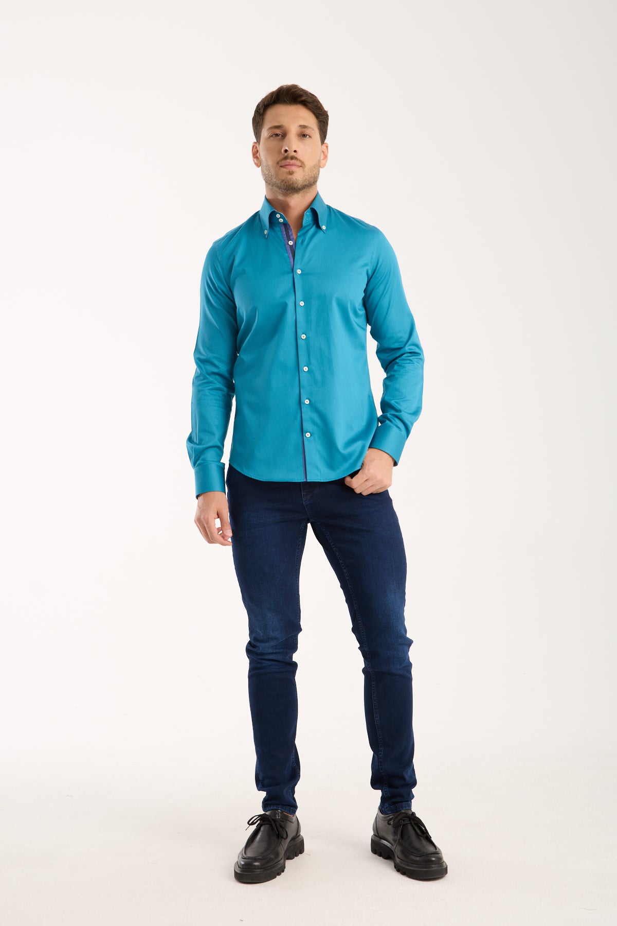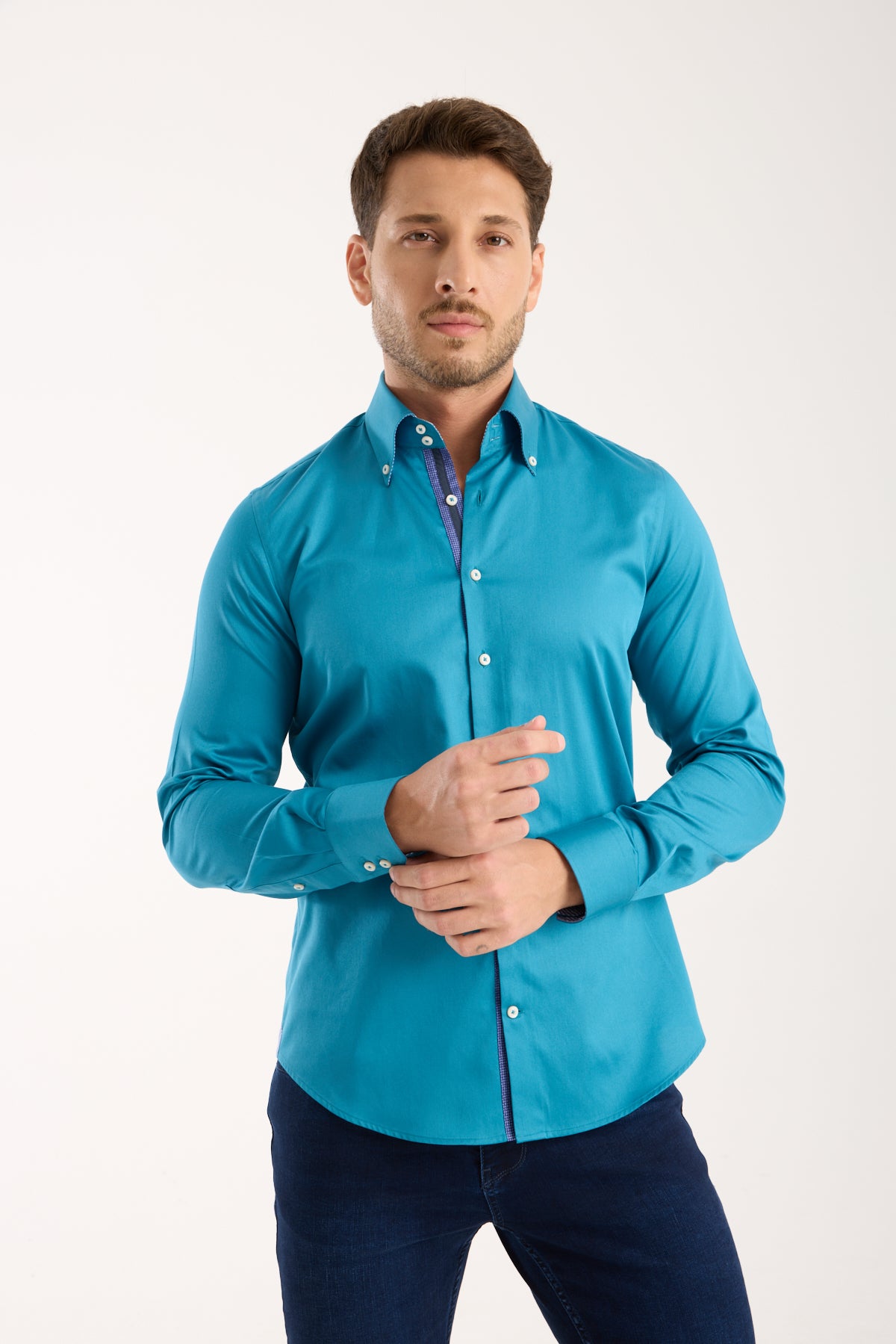 Scopri la nostra camicia slim fit da uomo, realizzata in pregiato satin, che unisce stile e comfort in un'unica soluzione. Questo capo d'abbigliamento è perfetto per ogni occasione, grazie al suo design iconico e alla vestibilità moderna. Il colletto button down conferisce un tocco elegante, rendendola adatta sia per eventi formali che per uscite casual.