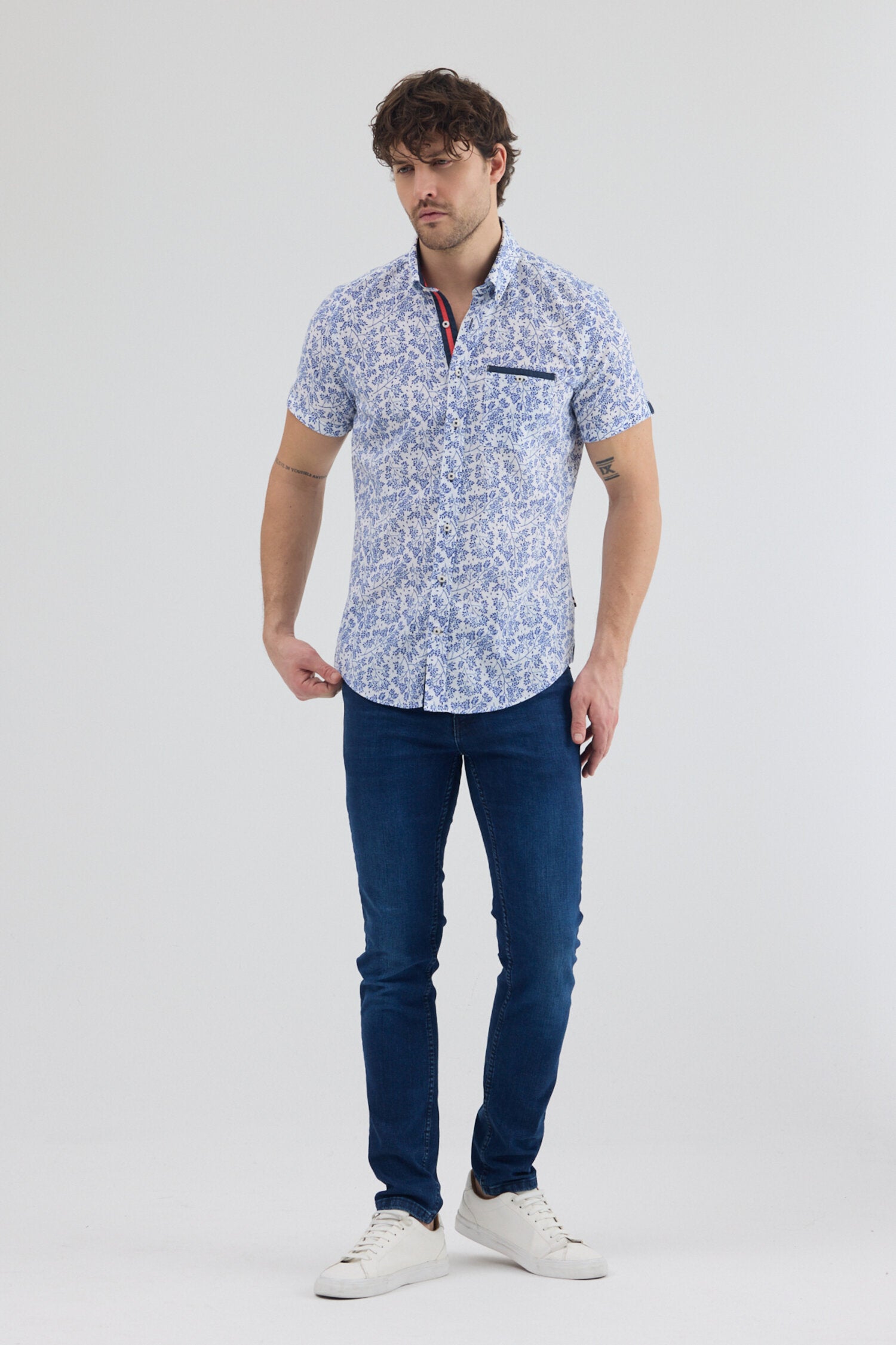 Scopri la nostra camicia slim fit in lino, perfetta per ogni occasione. Con un elegante collo button down e maniche corte, è progettata per garantire comfort e stile. Il suo design distintivo presenta un motivo raffinato che cattura l'attenzione e aggiunge un tocco di freschezza al tuo guardaroba, rendendola ideale per le calde giornate estive.