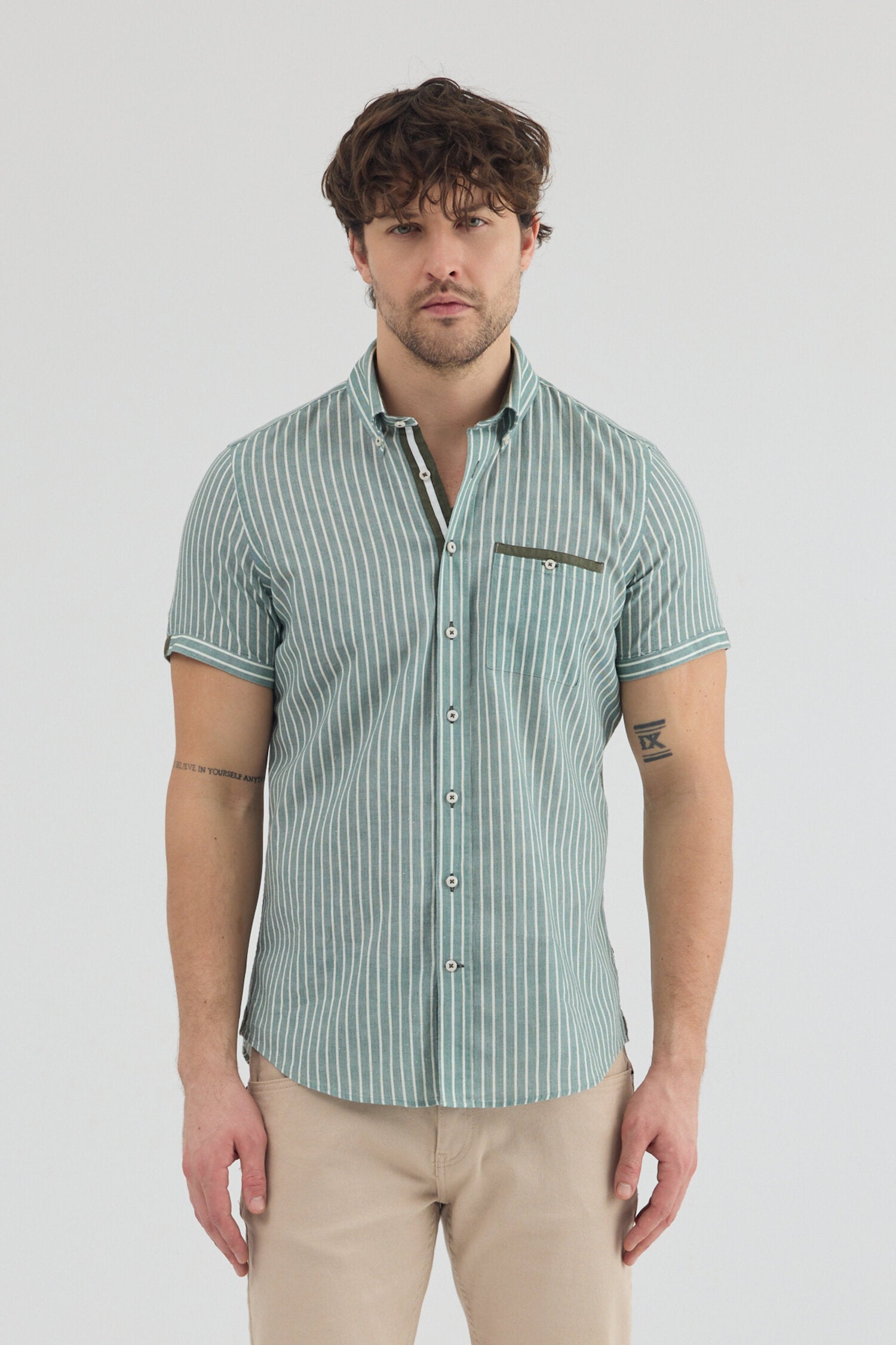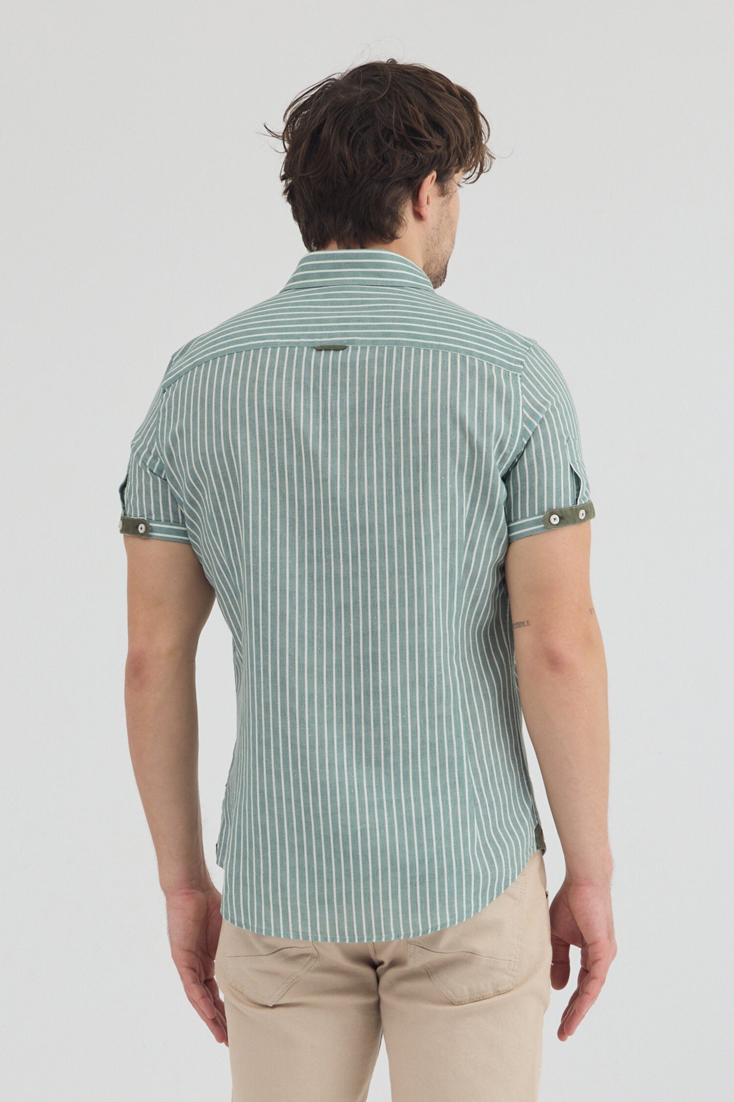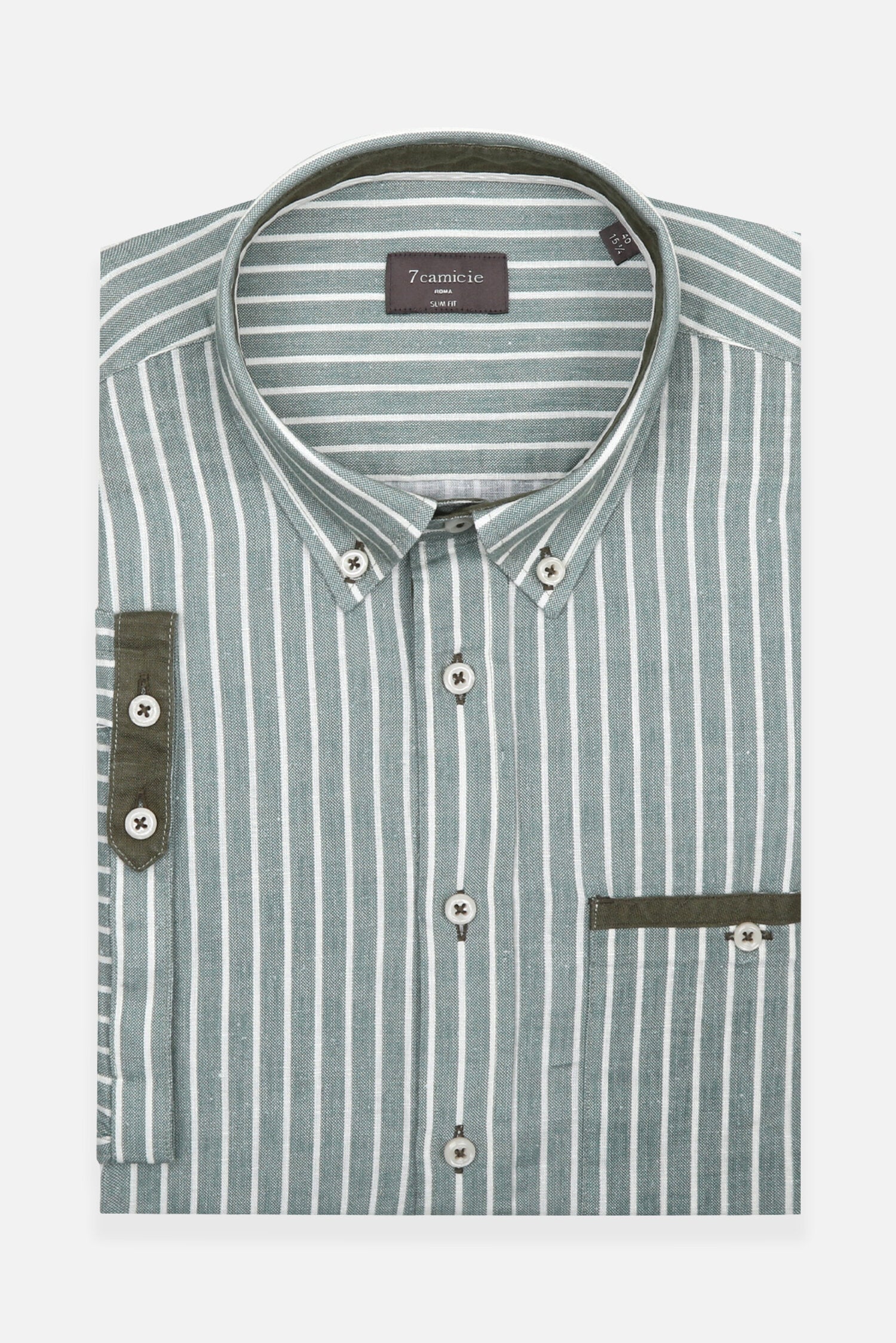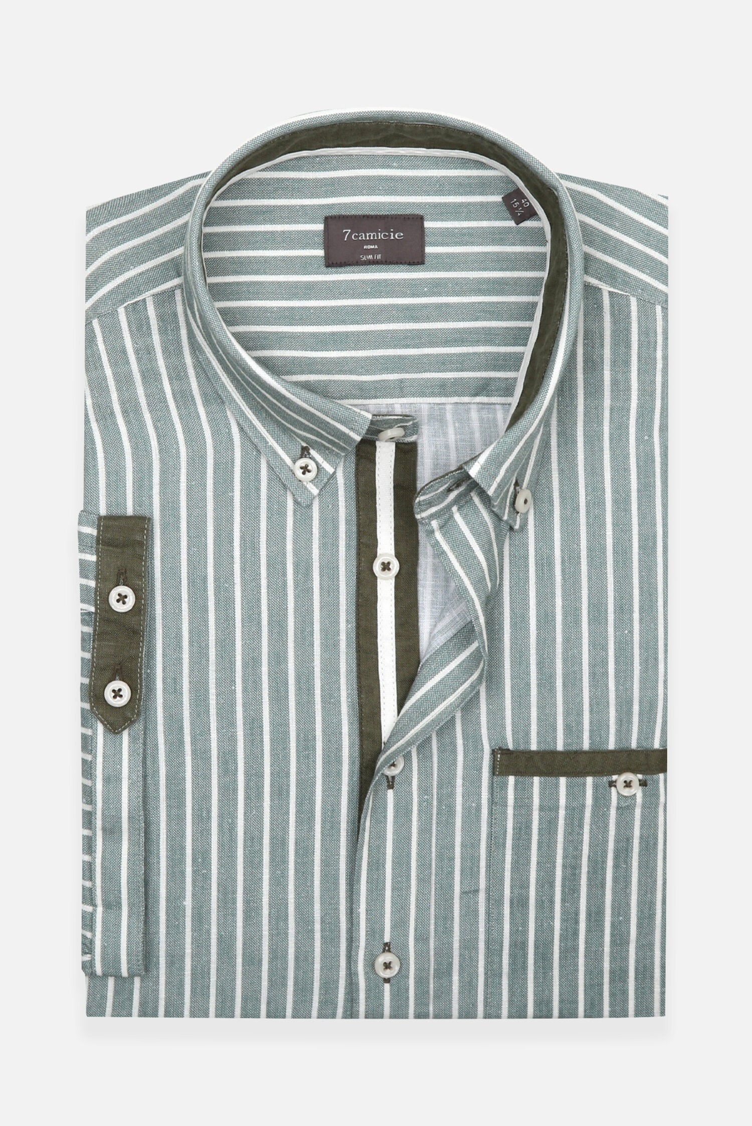 Camicia Uomo Manica Corta Iconic Lino Verde Bianco