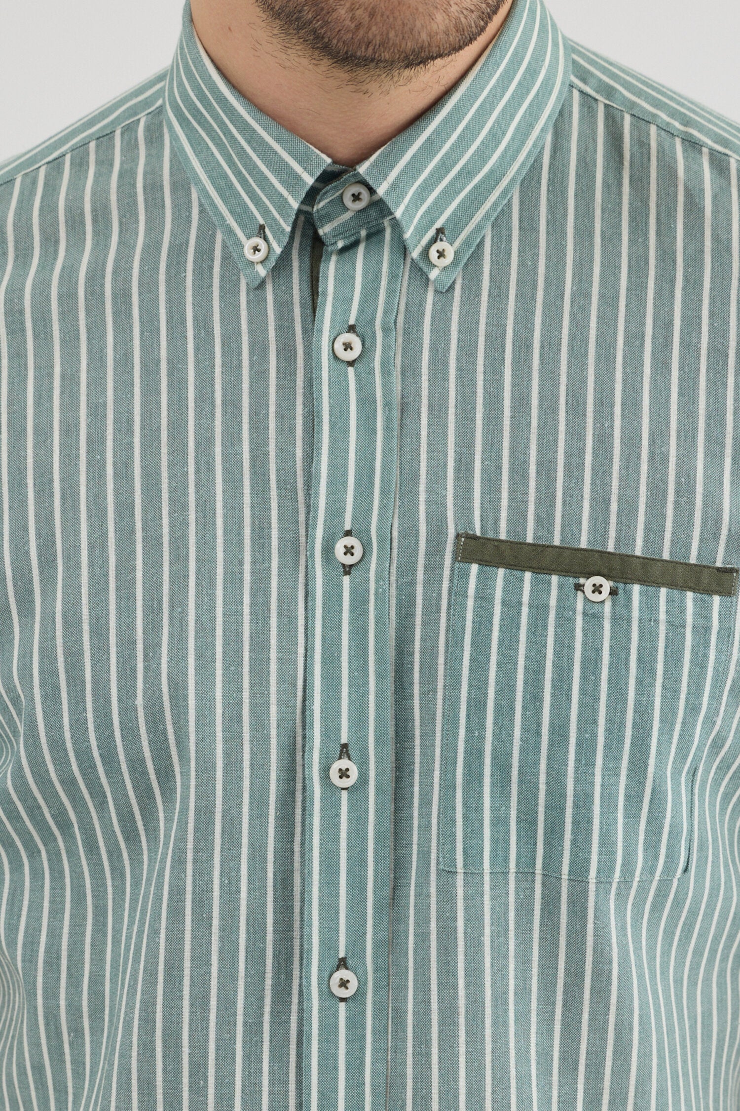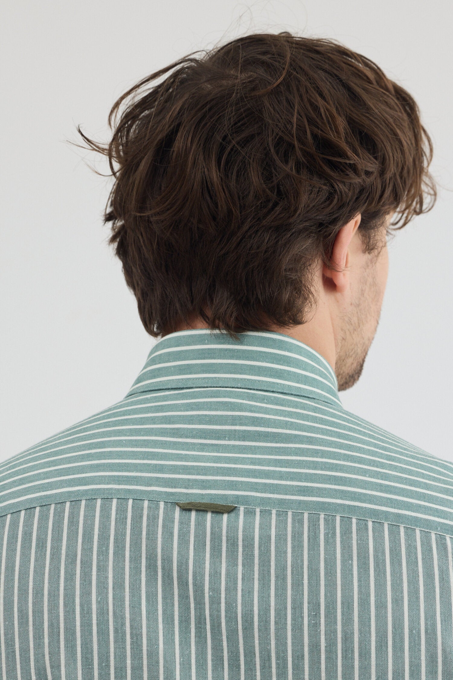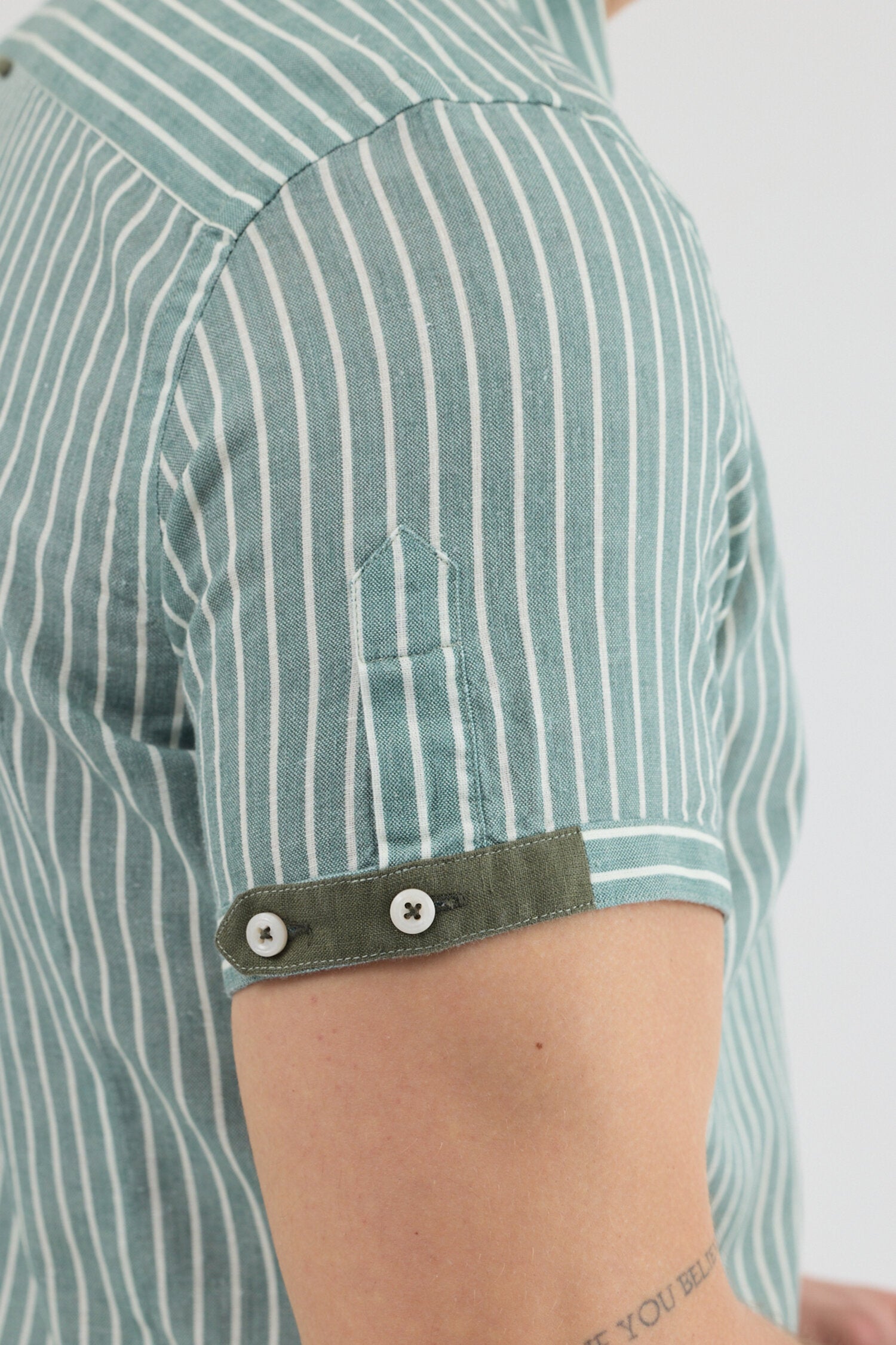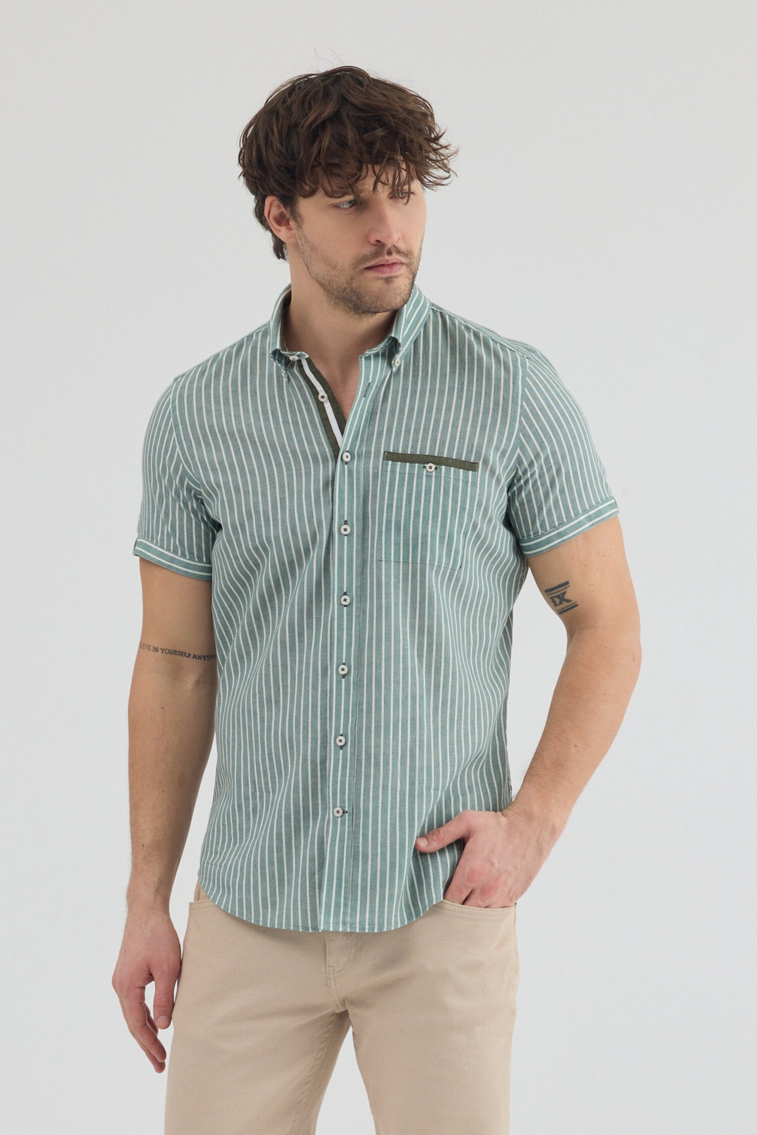 Camicia Uomo Manica Corta Iconic Lino Verde Bianco