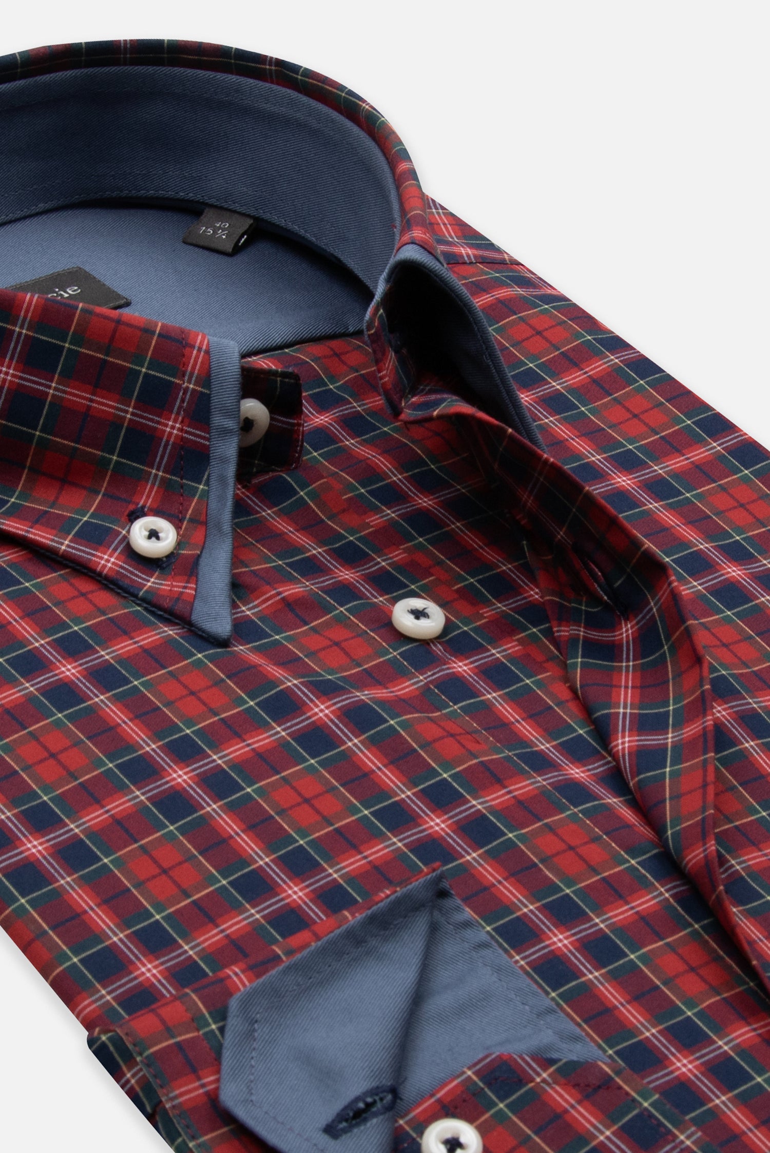 Questa camicia presenta un colletto button down doppio collo che aggiunge un tocco di raffinatezza al tuo look. Con maniche lunghe e una vestibilità slim fit, la camicia offre una silhouette affusolata, ideale per evidenziare la figura maschile. Il pattern a quadretti sottili in tonalità di rosso e blu conferisce carattere, mentre i dettagli interni fanno brillare il design senza compromettere l'eleganza. Adatta a ogni stagione, è un pezzo indispensabile nel guardaroba di ogni uomo.