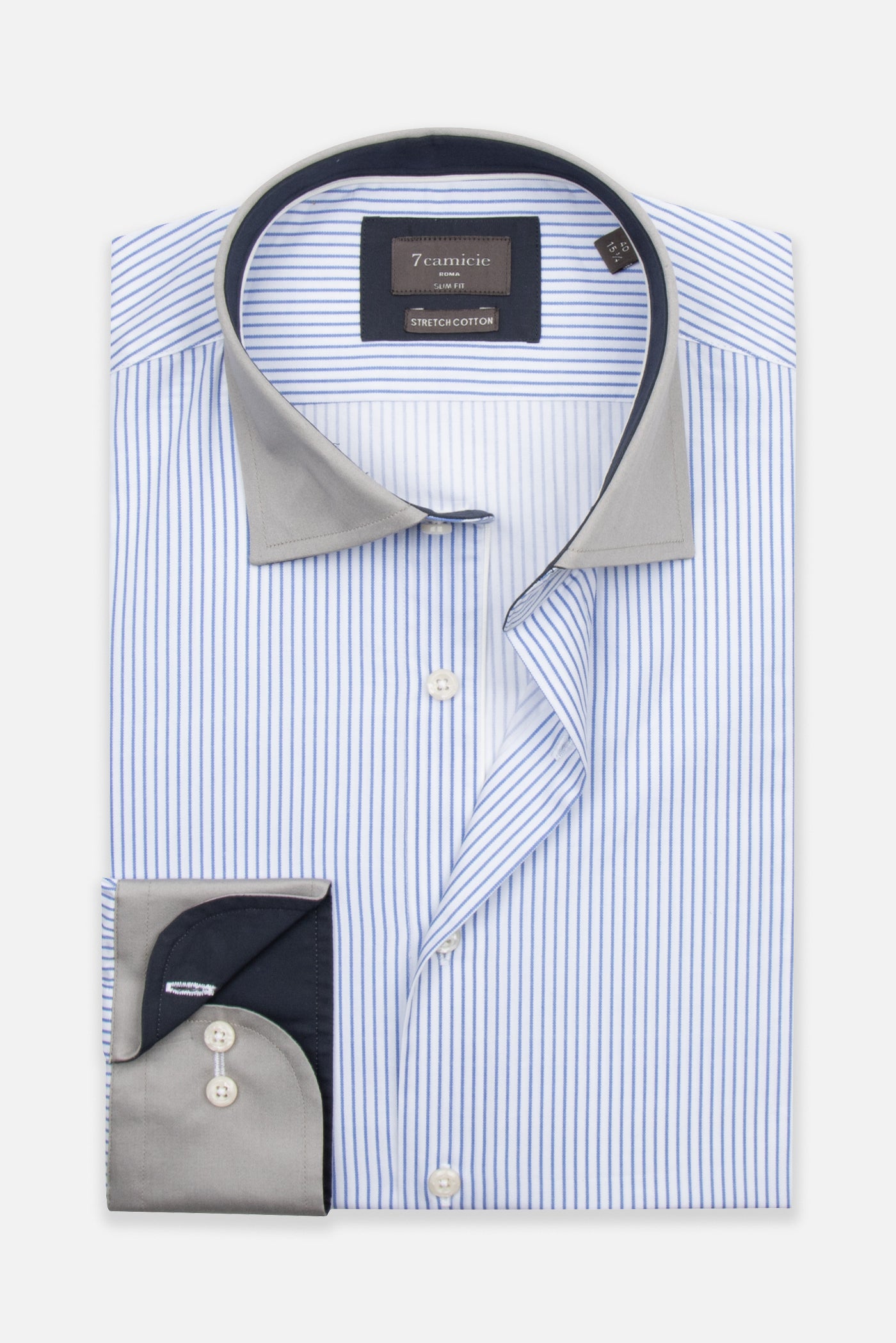 La camicia è dotata di un design a strisce medie che aggiunge un tocco di freschezza e modernità al tuo guardaroba. Il fitting Slim Fit valorizza la silhouette, mentre le maniche lunghe la rendono adatta a tutte le stagioni. Il contrasto nel collo e nei polsini aggiunge un dettaglio unico che farà risaltare il tuo stile.