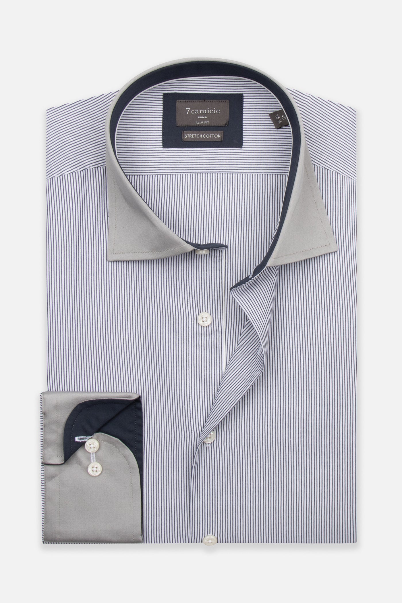 Scopri la nostra camicia sportiva da uomo con collo francese, progettata per offrire stile e comodità in ogni situazione. Realizzata in poplin di cotone elasticizzato, questa camicia unisce un fit slanciato a un design moderno e sofisticato, perfetta per gli outfit casual e formali.