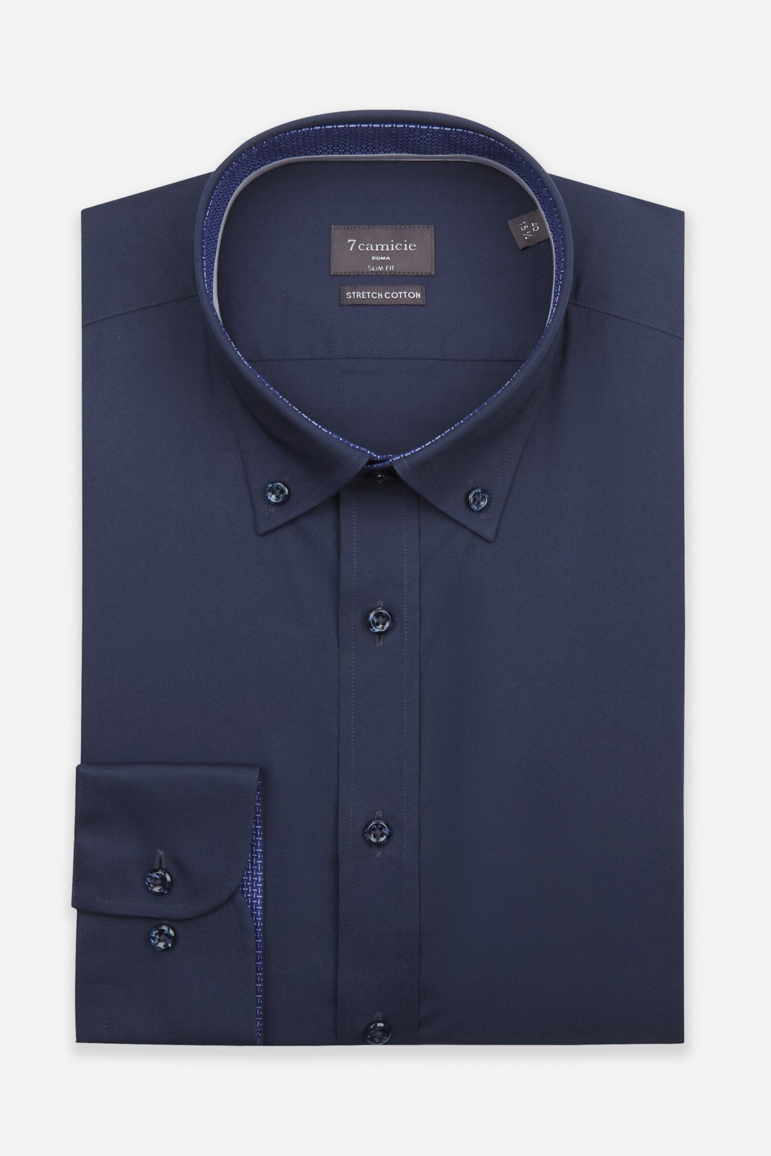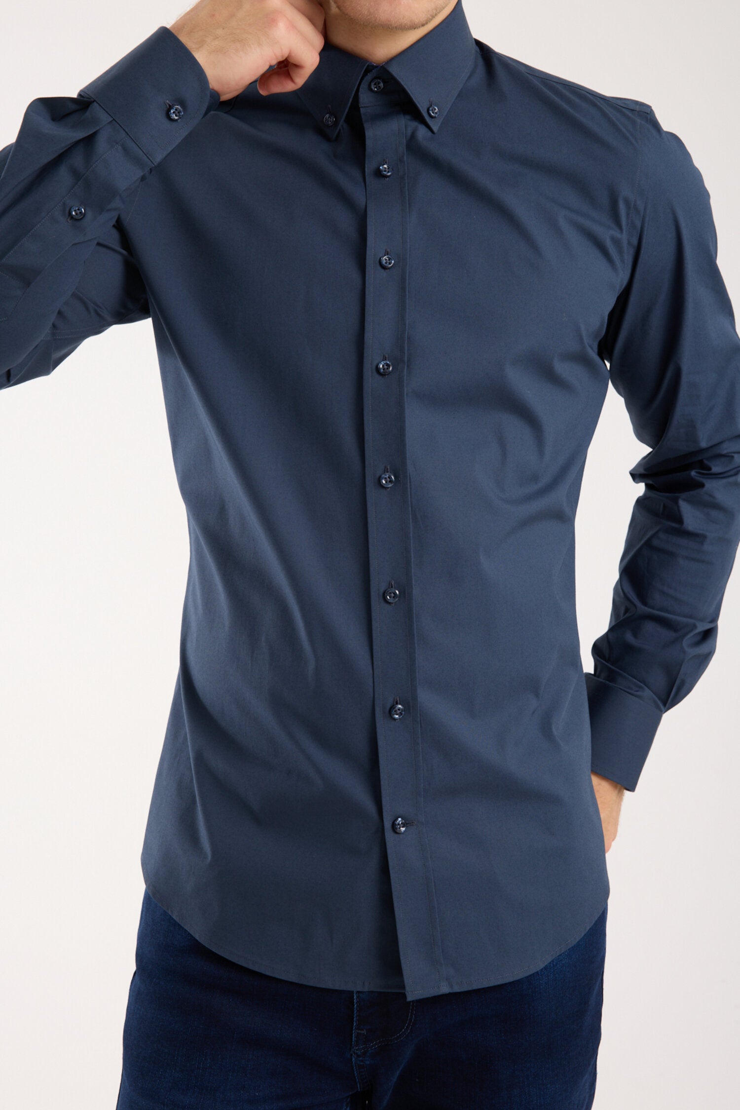 This shirt is crafted with a button-down collar, offering a sophisticated look while maintaining a relaxed vibe. The long sleeves are perfect for layering or wearing alone, and the plain pattern allows for versatility in styling. Available in a rich navy color, it complements a variety of outfits while ensuring you stand out for all the right reasons. The slim fit design contours to your body for a flattering appearance, making it a must-have in every man's wardrobe.