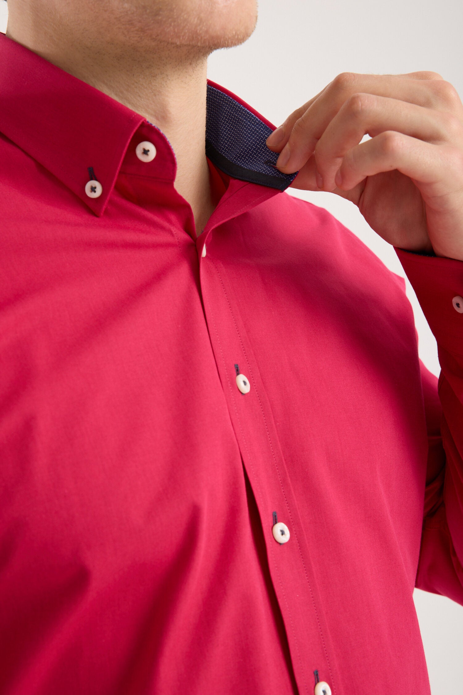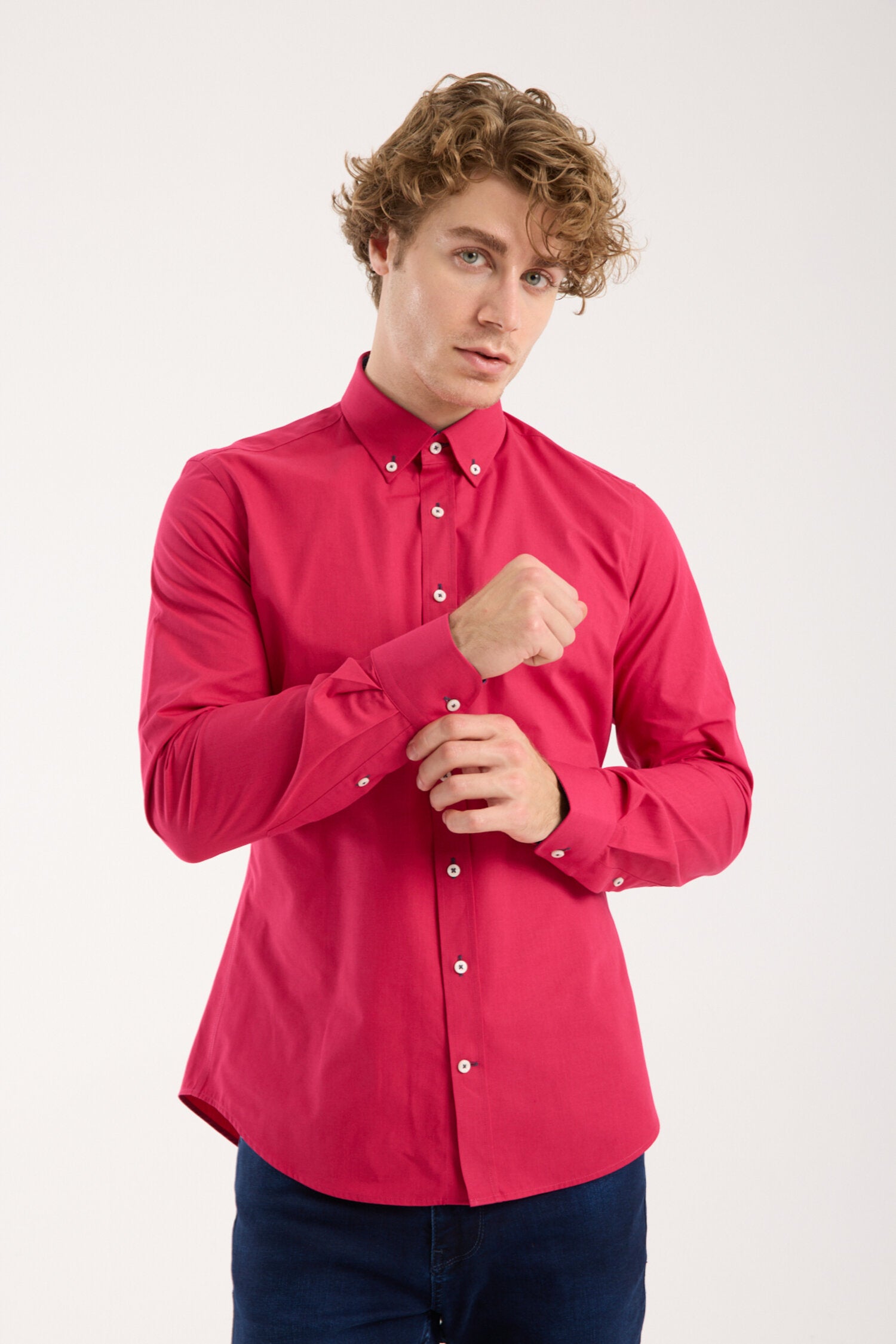 This long sleeve shirt features a sleek, plain pattern and is made from high-quality poplin stretch fabric for a comfortable fit that moves with you. The slim fit design accentuates your silhouette, while the vibrant red color offers a bold statement. Whether you're heading to the office or a weekend get-together, this shirt will keep you looking sharp and stylish.